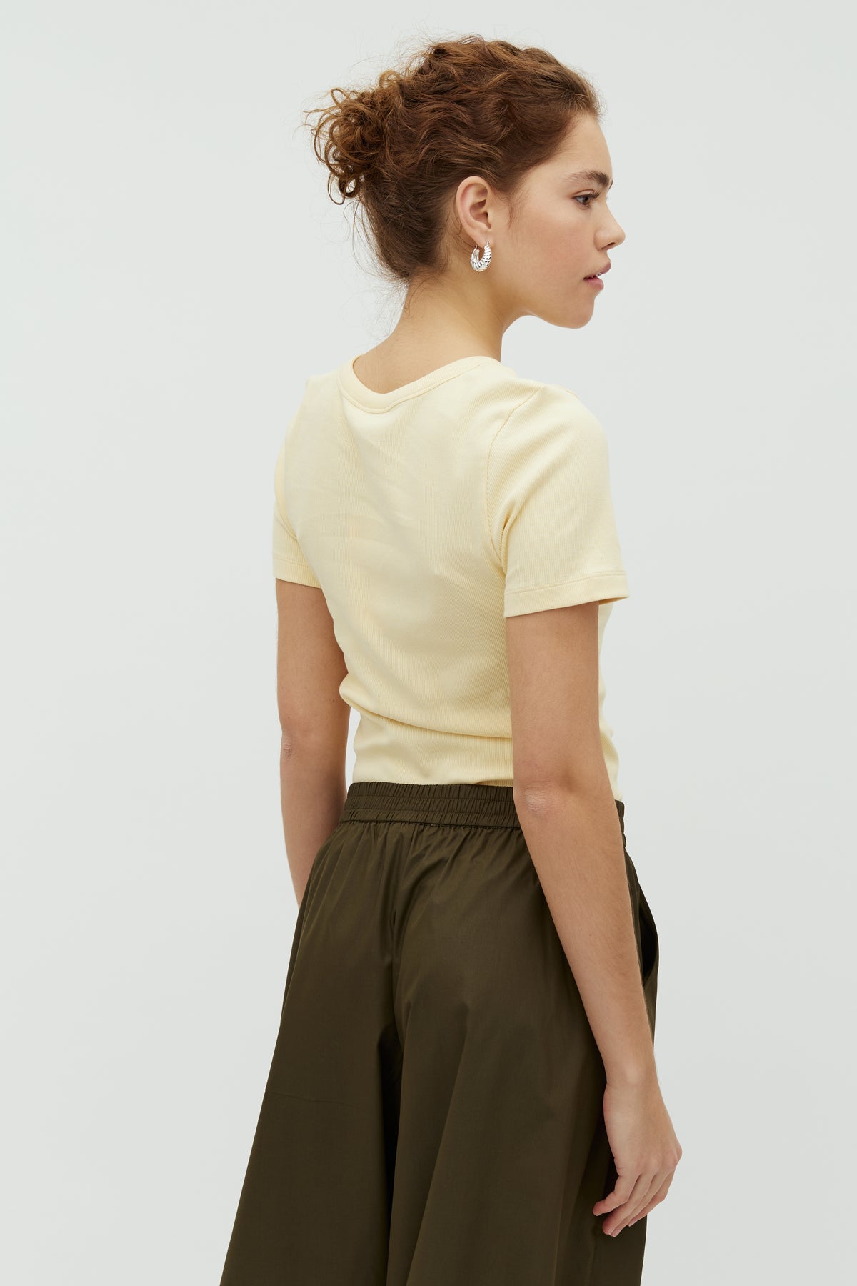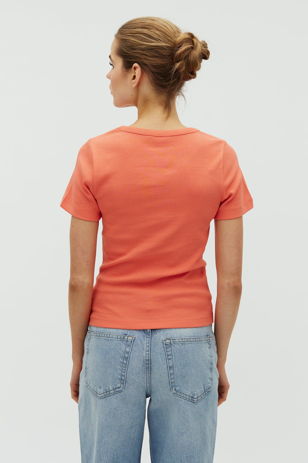 Otis T-Shirt er i en fin ribkvalitet med masser af stræk. Blusen har korte ærmer, rund hals og en tætsiddende pasform. En lækker basisstyle til garderoben, som kan bruges i alle sæsoner.