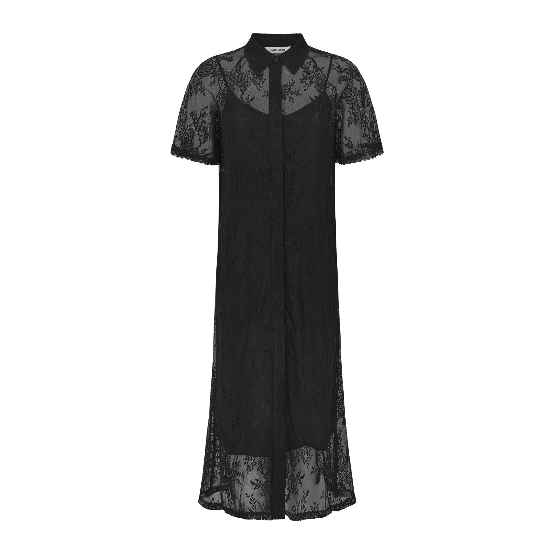 Blondekjolen Laurel fra Soft Rebels, er en elegant og populær blondekjole, der emmer af femininitet. Kjolen har skjult stolpelukning, skjortekrave og korte ærmer med fine pyntestikninger. Den lette A-form giver en smuk silhuet, og længden går til anklerne. Der medfølger en aftagelig underkjole, så du kan bruge den både med og uden. Kan let styles til både hverdag og fest.