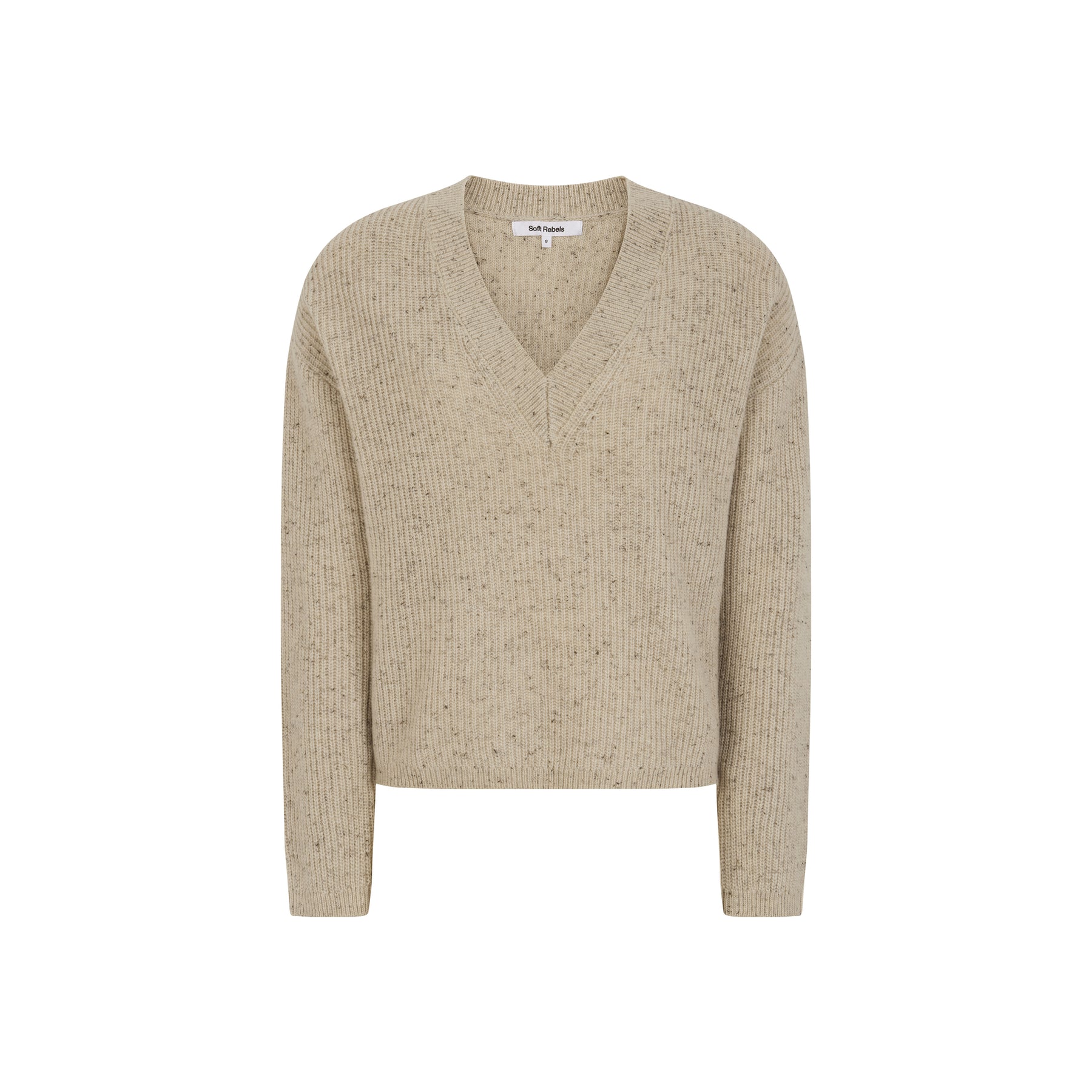 Softrebels West V-neck Knit er en tidløs og elegant striktrøje med flot V-udskæring, der giver et feminint og stilrent look. Den er lavet i en luksuriøs kvalitet med 70% uld, som gør den både blød, varm og åndbar – perfekt til efterår og vinter, men også ideel til lag-på-lag styling hele året rundt.